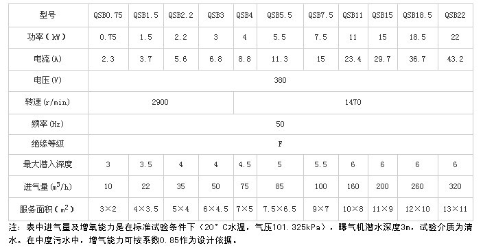 五,QXB離心式潛水曝氣機性能參數(shù)